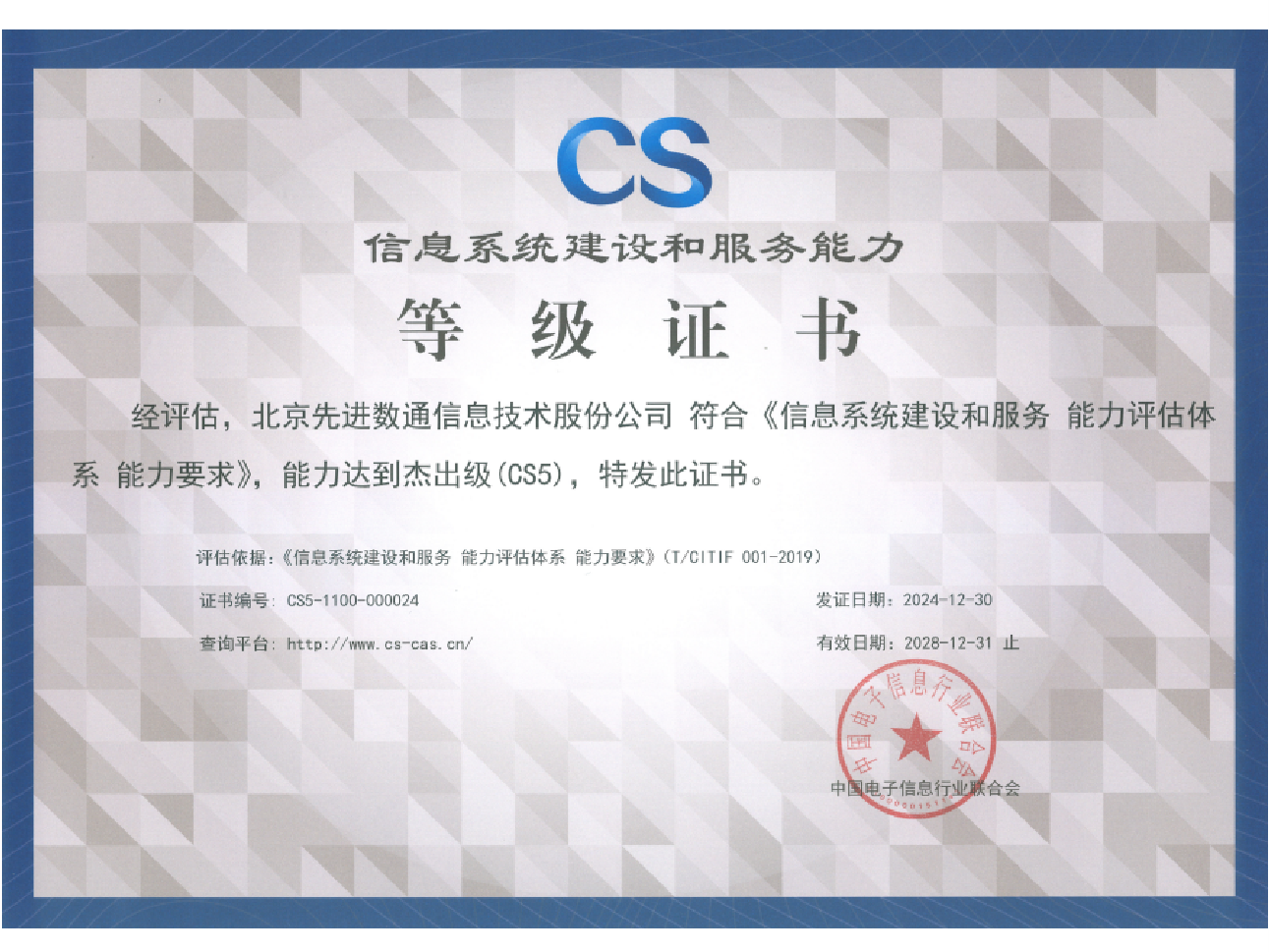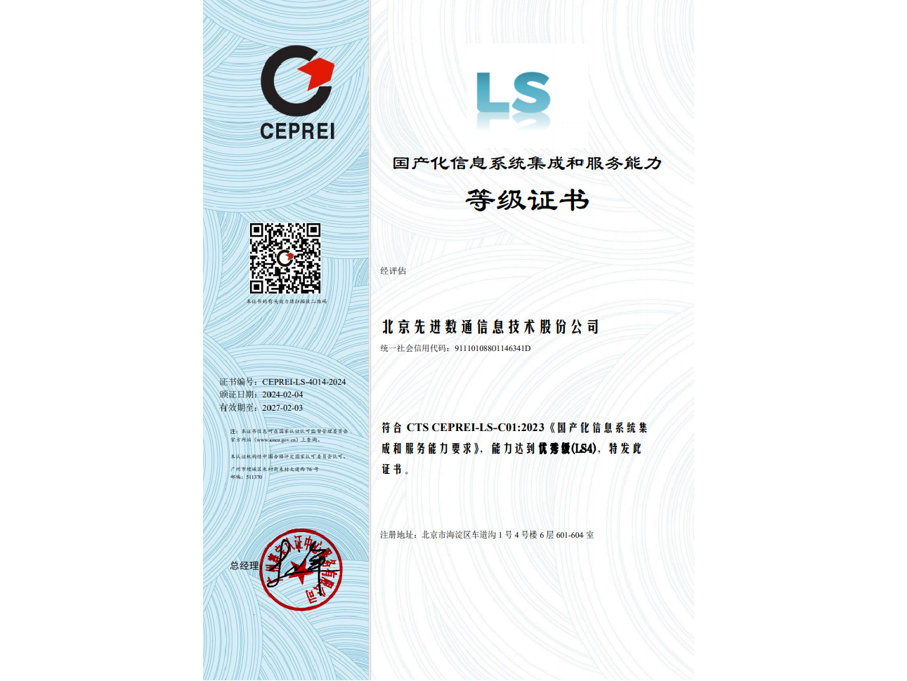 Ezpay先后取得CMMIL5、软件能力成熟度五级(SPCA 5)、信息系统建设和服务能力评估体系(CS)5级、ITSS成熟度一级、信息系统安全集成服务资质二级、信息系统安全运维服务资质二级、国产化信息系统集成和服务能力评估四级(LS4)、北京市企业技术中心等资质认证,并取得ISO9001、ISO20000、ISO27001、ISO14001、ISO45001、ISO22301、ISO37001、ISO28001、GBT29490等标准体系认证,具备行业领先的技术开发、工程实施及服务保障能力。